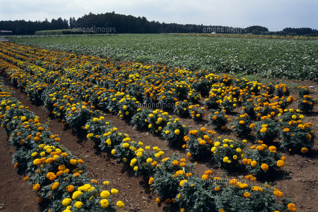 センチュウ駆除のため畑に植えられたマリーゴールド の写真素材 イラスト素材 アマナイメージズ